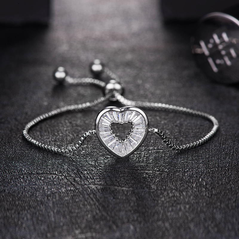 New Bracelet Platinum Plated Hand Jewelry Hollow Love Zircon Pure Copper Bracelet