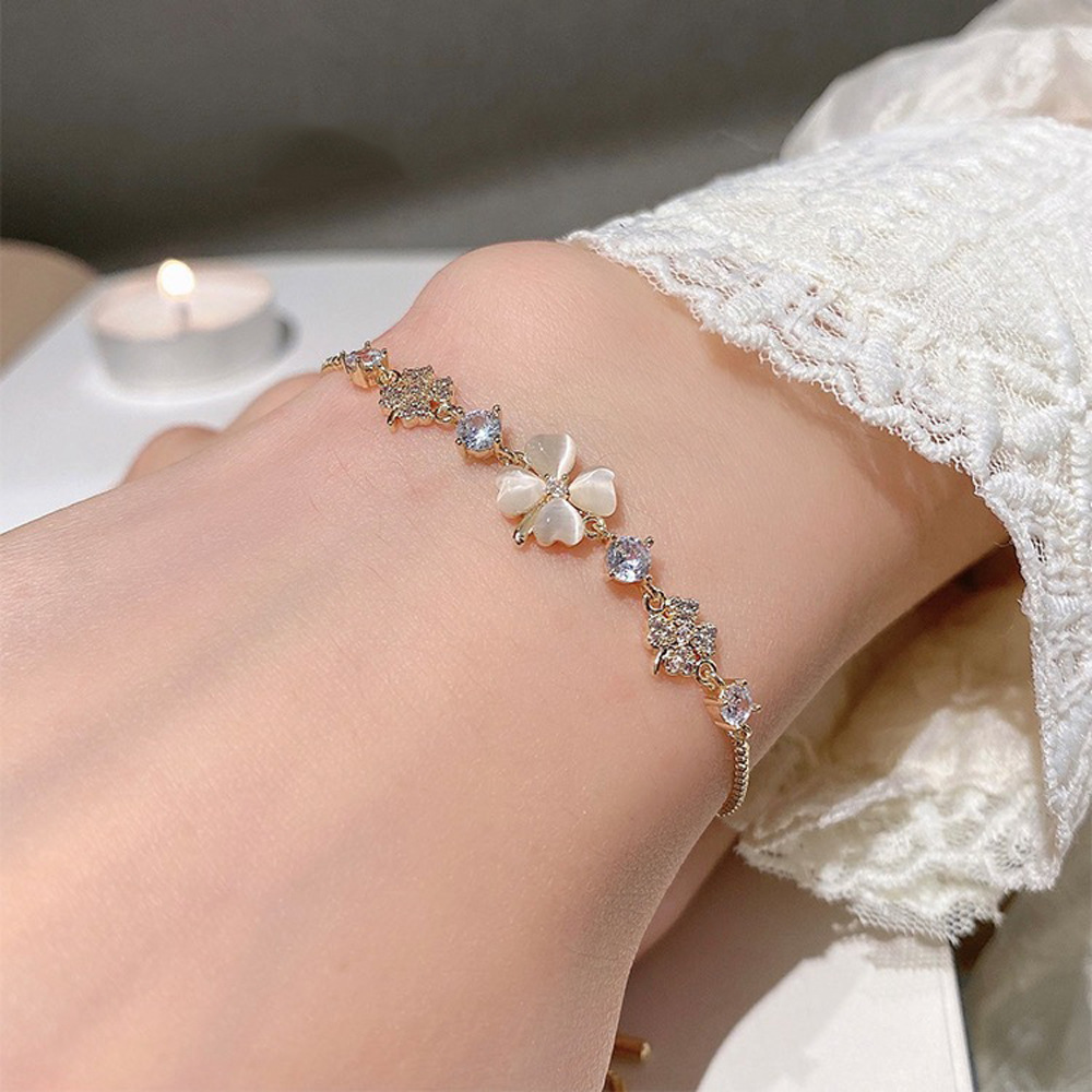Super Fairy Elegant and High-End Bracelet, Elegant New Diamond-Encrusted Cat's Eye Petals and Flower Bracelets, Versatile and Exquisite Bracelets