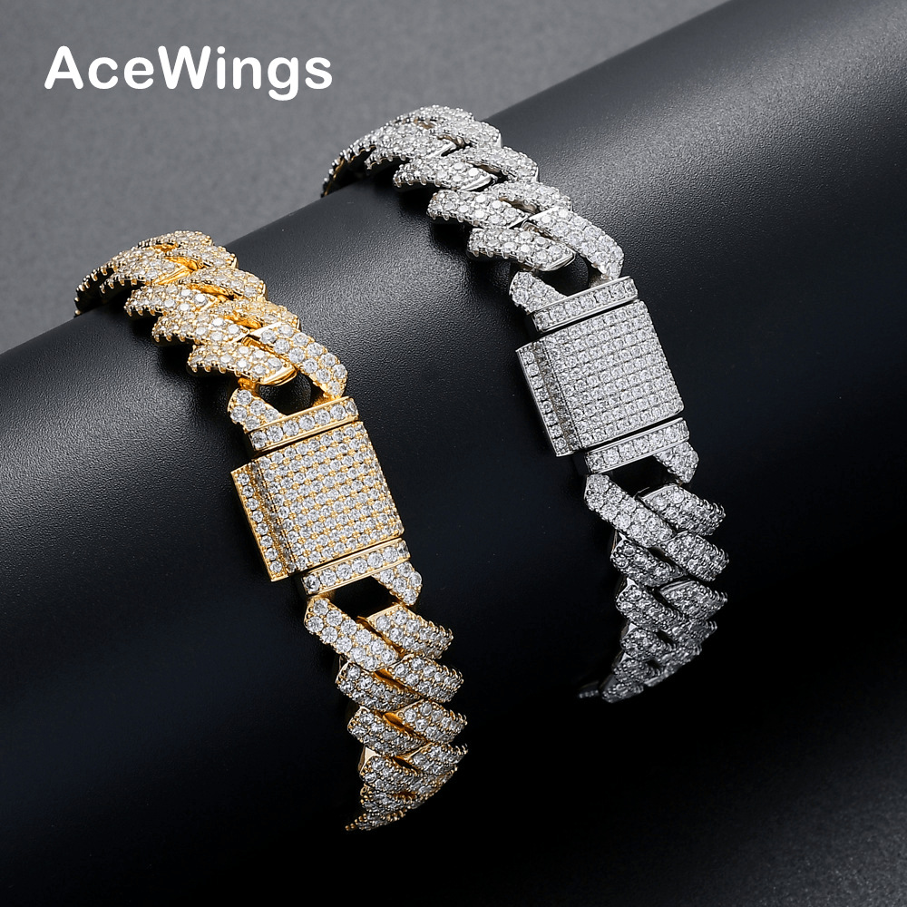 European and American Hip Hop Bracelet Niche High-end Men's Fashion Box Buckle Copper Set Zircon silver 18mm Cuban Chain Bracelet