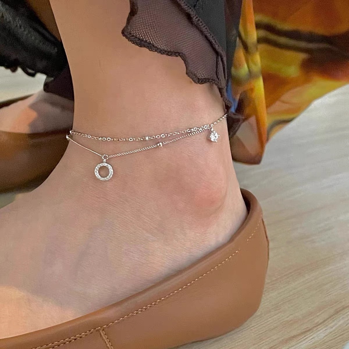 Double-layer Design Anklet Girl's Summer Thin Chain Distinctive Fashionable Stacked Wear Hierarchical Exquisite Korean Style Ankle Chain Bracelet