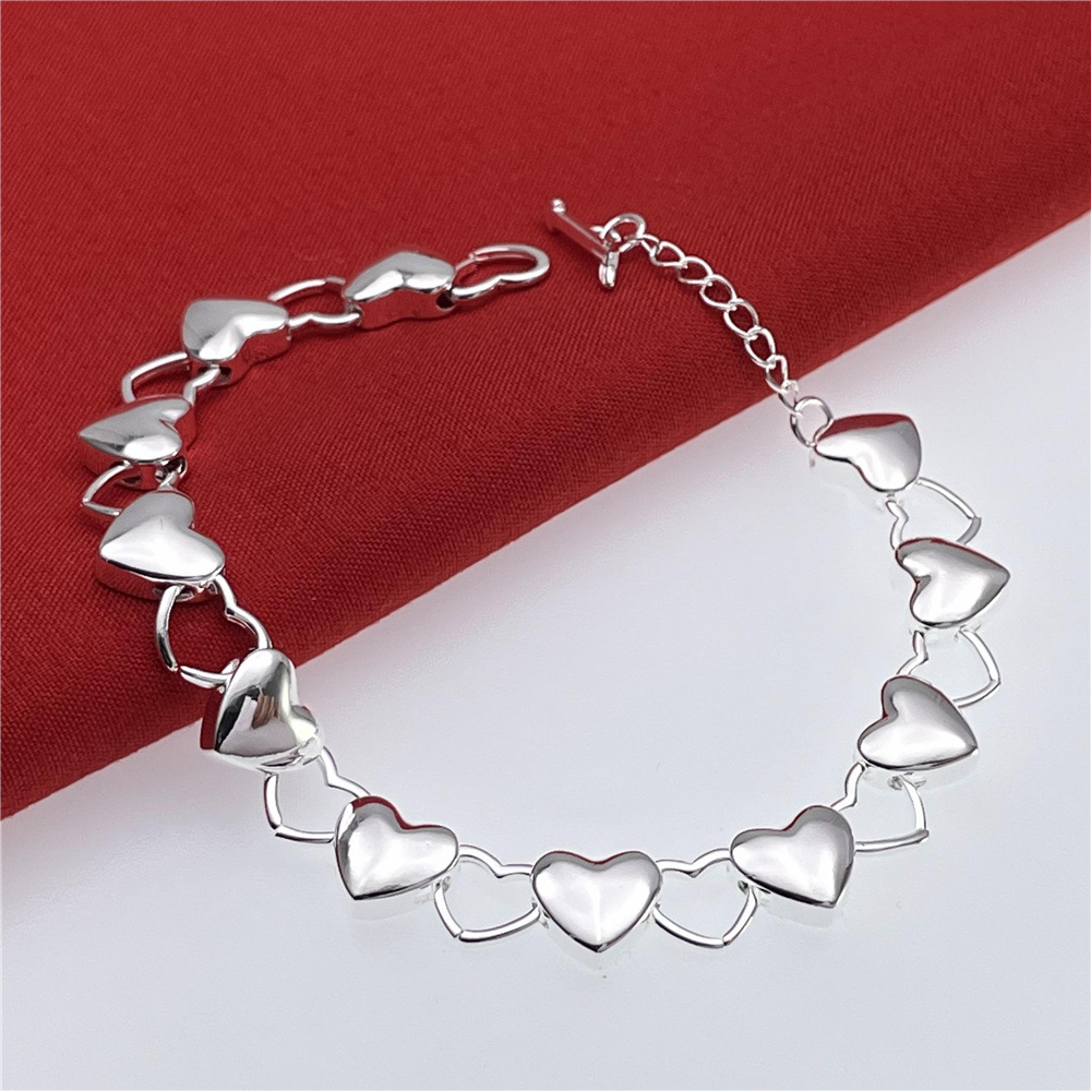 European and American Hot-Selling 925 Silver-Plated Fashion Heart-To-Heart Cupid Bracelet Jewelry Factory Price Wholesale Yhd085 Chain