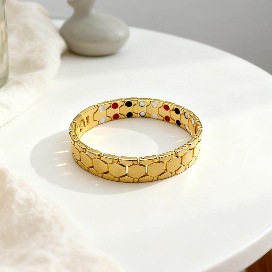 European and American Cross-Border Best-Selling Hot Item 1.2cm Diamond-Shaped Double-Row Bracelet with Magnetic Energy and Detachable Hexagonal Bracelet