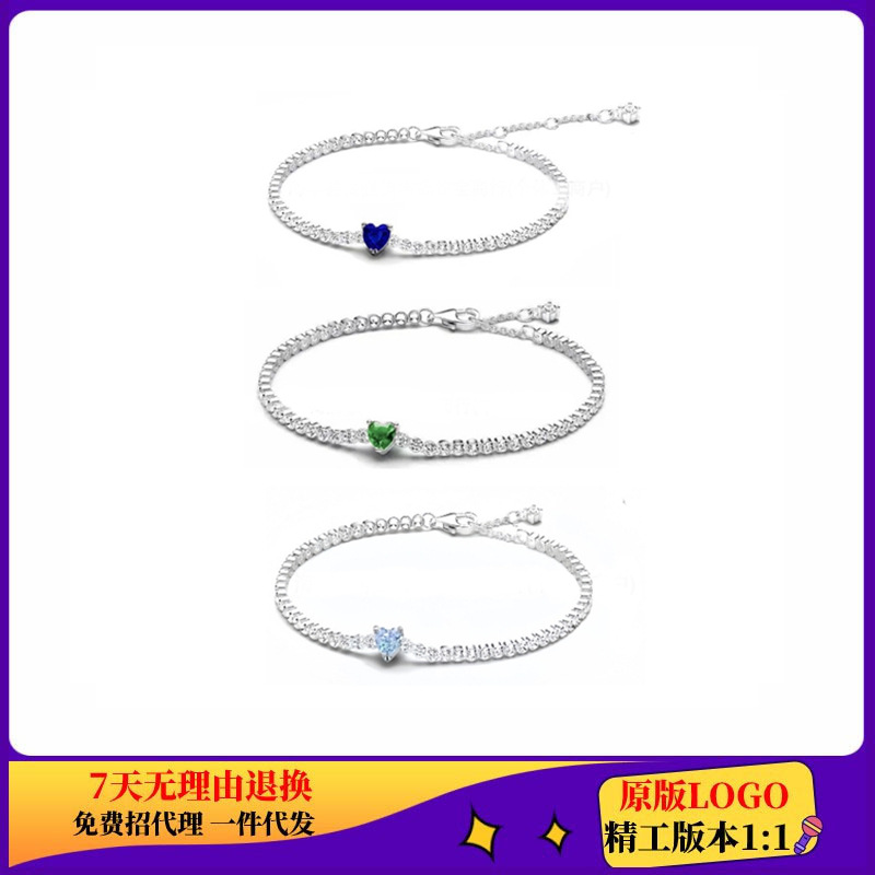 Panjia White Copper Silver Plated Shine Multicolor Diamond light blue Green Shine Bracelet