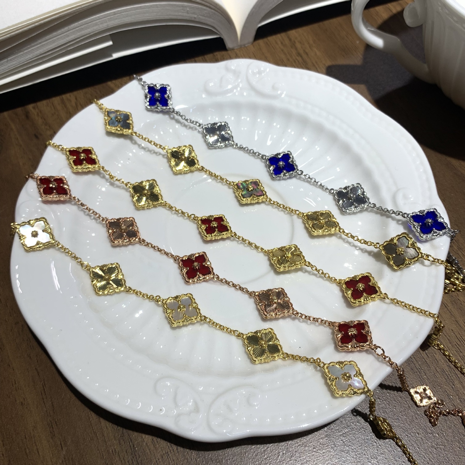 Buqi Lati Italian Brushed Mini small size Four-leaf Clover Five-flower Laser Bracelet for Women Retro Palace Style