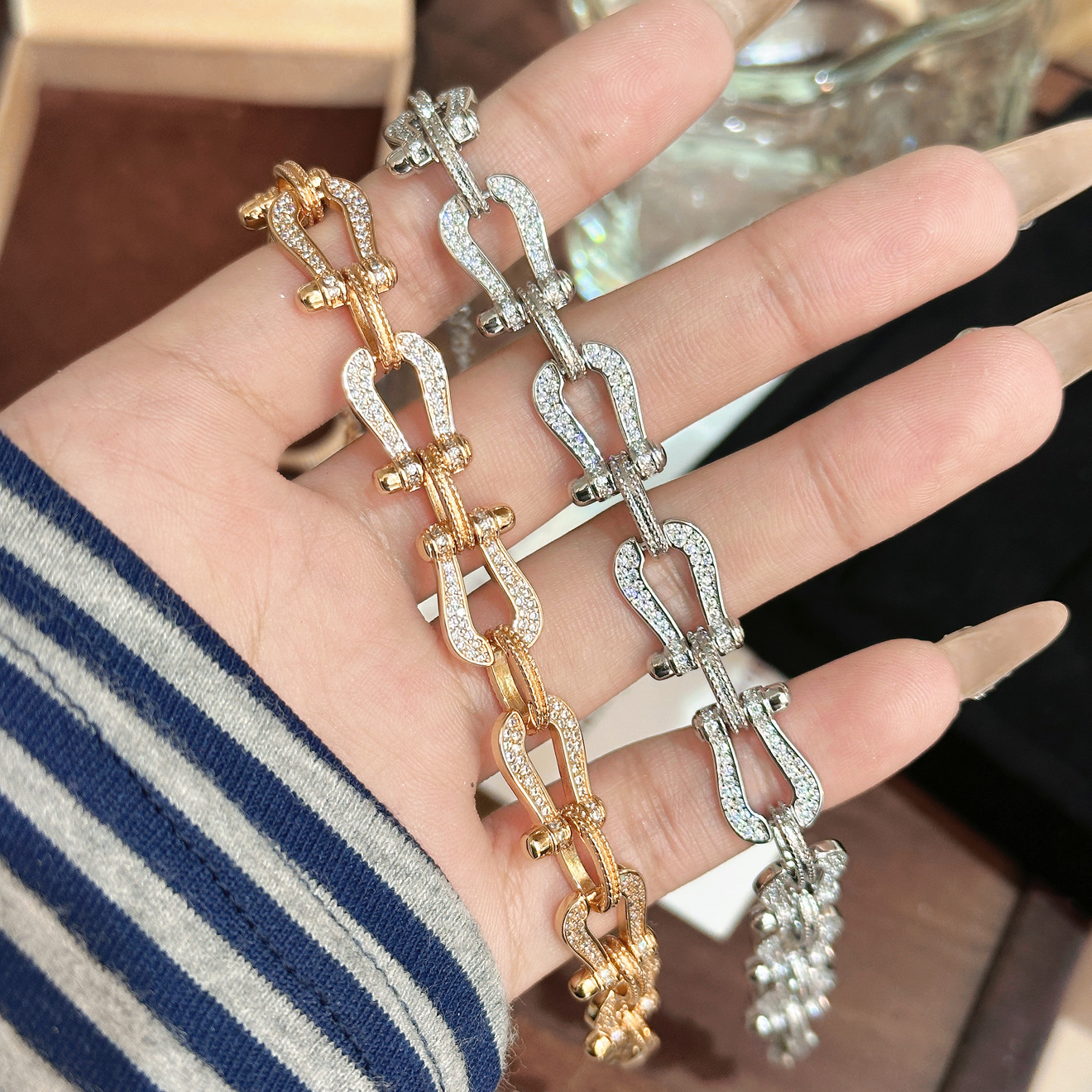 New Full Diamond Horseshoe Buckle Bracelet, Fashionable and Versatile, Heavy Industry, Trendy, Niche, High-End, Personalized, Versatile and Elegant Hand Jewelry