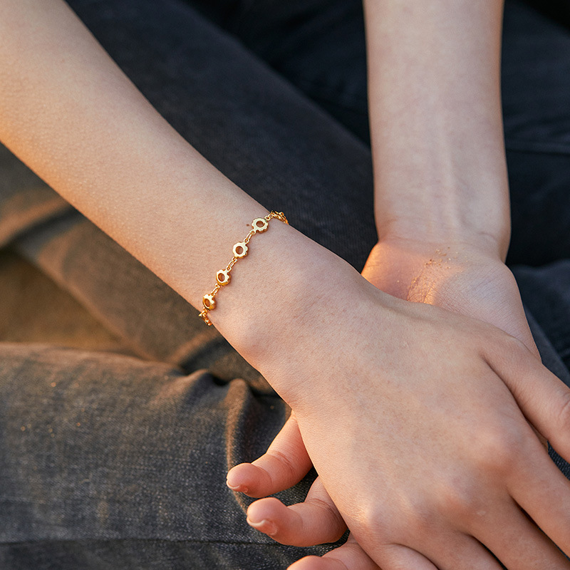 LINIO autumn new brass plated 18K real gold hollow flower chain color retaining bracelet sweet texture bracelet