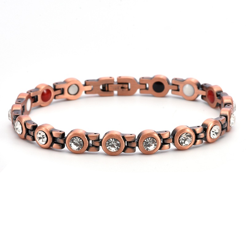 European and American Cross-Border Magnetic Red Copper Bracelet Korean Style Crystal Pure Copper Bracelet Retro Fashion Zircon Pure Copper Bracelet Women's Model