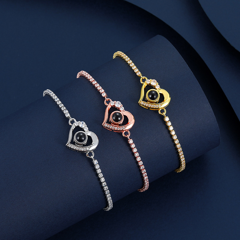 Cross-border best selling new love zircon push-pull adjustable bracelet women 100 languages HD color photo projection bracelet