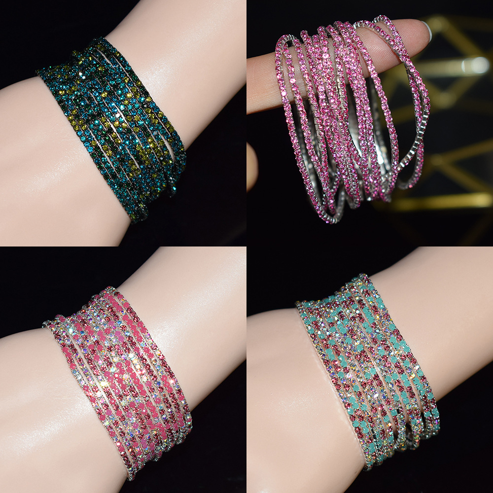 10 Packs of 2mm European and American Creative Hand Jewelry, Claw Inlaid with Rhinestones, Full of Diamonds, Single Row Elastic Elastic Bracelets Wholesale