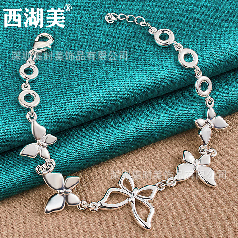 West Lake Beauty Silver Jewelry Five Butterfly Hollow Ring Bracelet Jewelry
