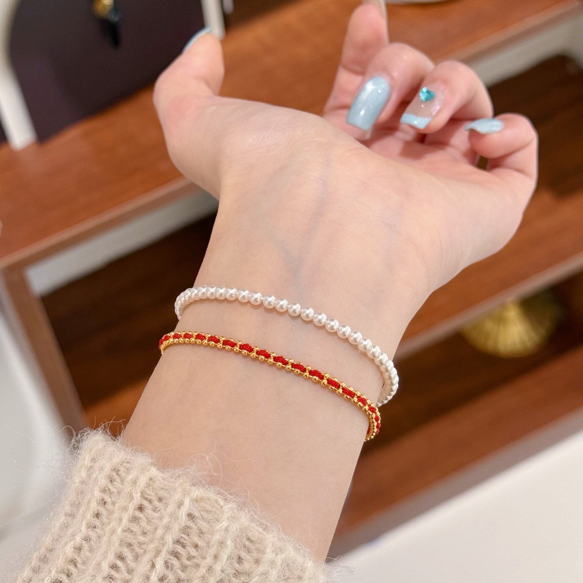 Red Rope Stars in Paris, France Lucky Half Rope Half Chain Women's High-end Transporter Bracelet This Year of Life