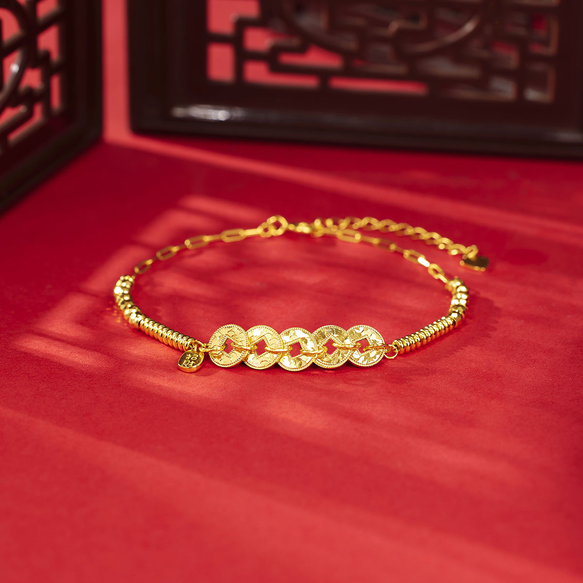 S925 Sterling Silver Coin Ice Ice Five Emperor Coin Bracelet Women's New Chinese Plate String Transfer Beads Nafu Copper Hand Jewelry