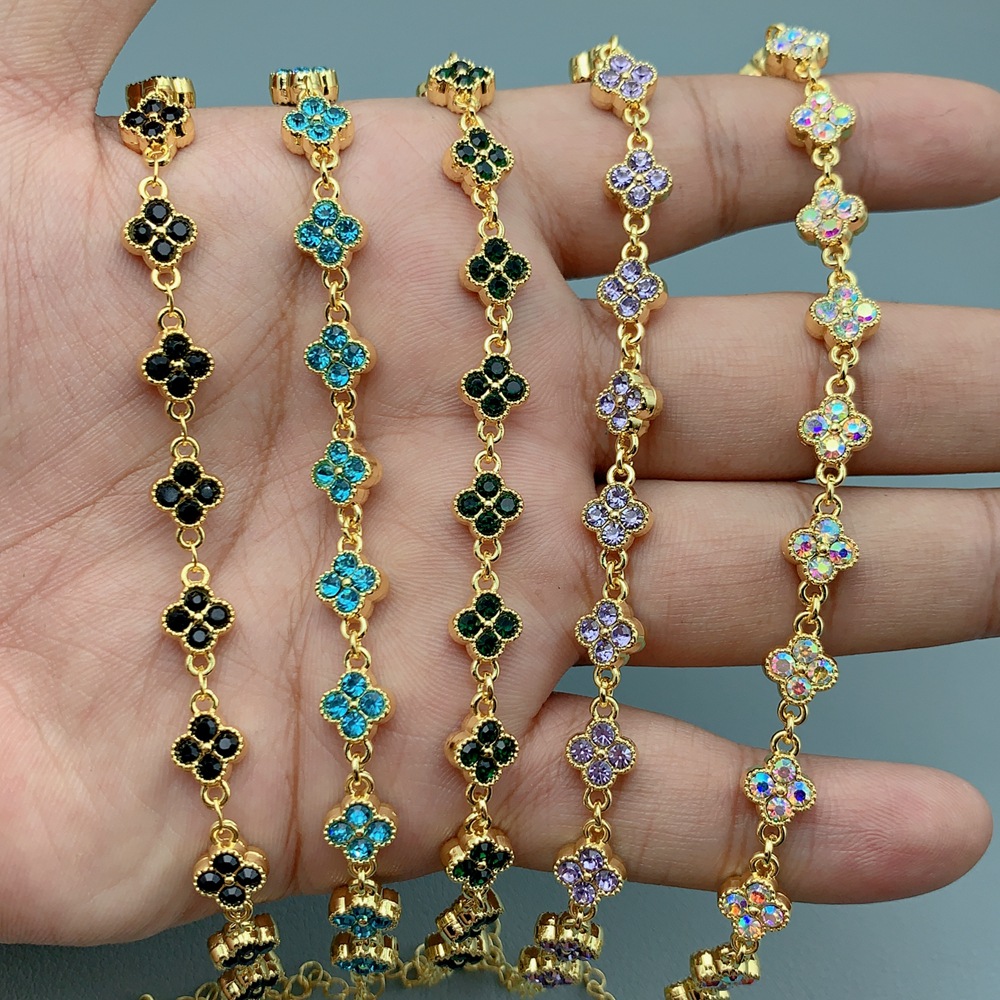 European and American Cross-Border Hot-Selling Copper Gold-Plated Colorfuled Zircon Four-Leaf Clover Bracelet for Women, High-End Accessible Luxury Lucky Petal Bracelet