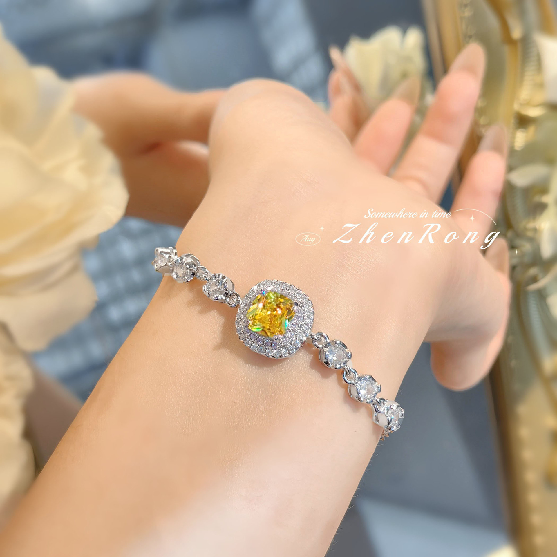 Light Luxury Elegant Sugar Raydean Yellow Diamond Bracelet High-end Niche Exquisite Simple All-match Argyle Yellow Diamond Women