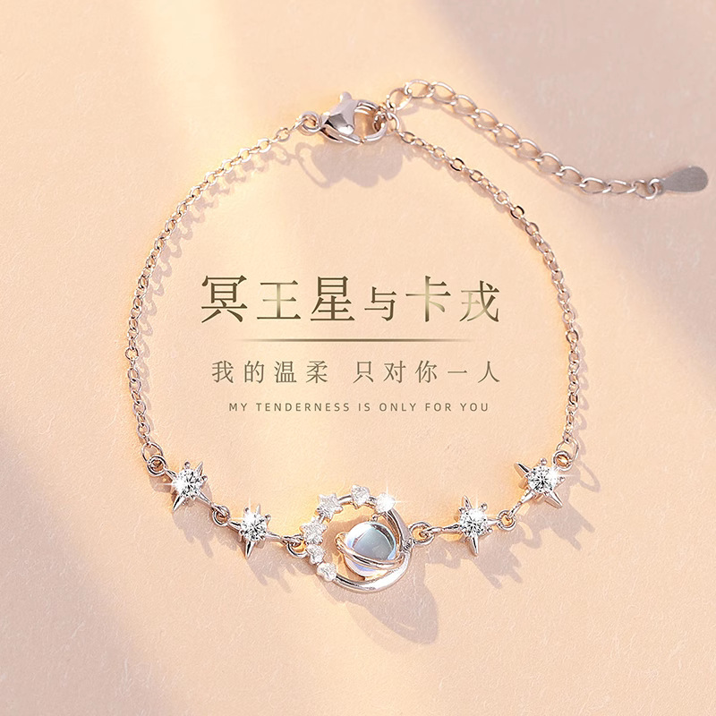 Pluto Charon Bracelet Women's Light Luxury Niche Exquisite Stars Moonstone Planet Bracelet Birthday Gift for Girlfriend