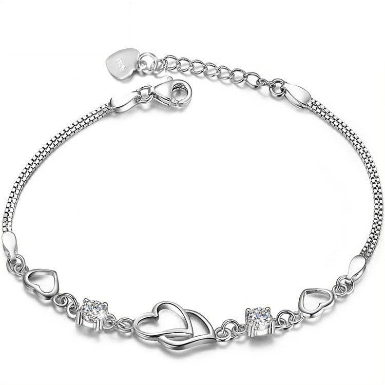 Silver Copper Bracelet Heart to Heart Bracelet Korean Fashion Women's Silver Jewelry Valentine's Day Gift Korean Style
