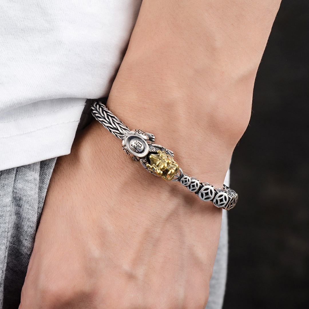 925 Sterling Silver Hand-woven Bracelet Men's Fashionable Vintage Ethnic Style Jewelry for Boyfriend Gift