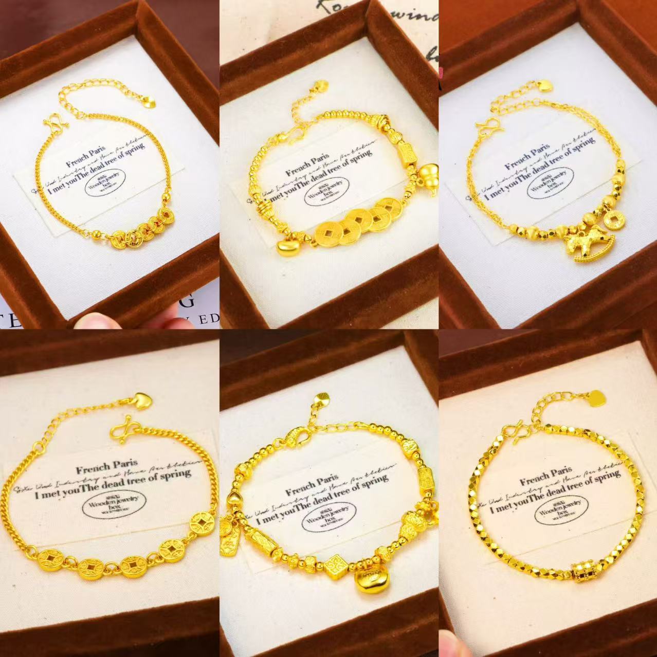 Wholesale of Gold Store's Same Style Sand Gold Coin Ingot Gourd Bracelet with High Color Retention and Small Waist, Get Rich Immediately Bracelet