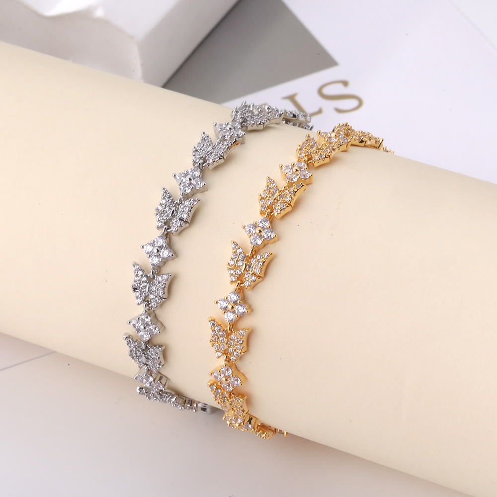 European and American Cross-border Butterfly Bracelet No Fading Women's Summer Full Diamond Zircon Bracelet Japanese and Korean Popular Fairy Girlfriend Bracelet