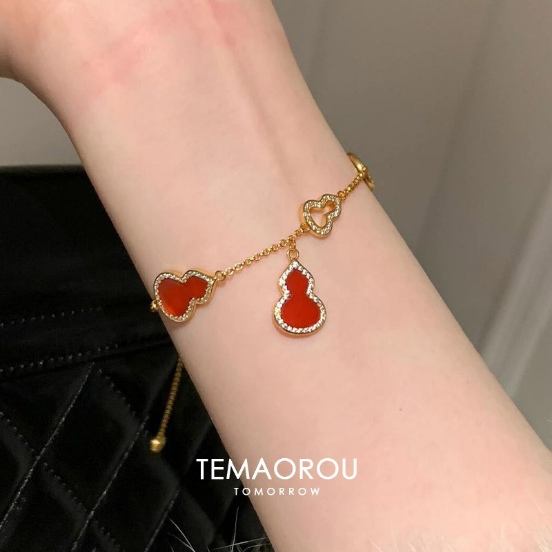 Xiaohongshu's Popular White Moonlight White Mother-Of-Pearl Gourd Bracelet 2025 New Year's Blessing Red Agate Small Gourd Hand Jewelry