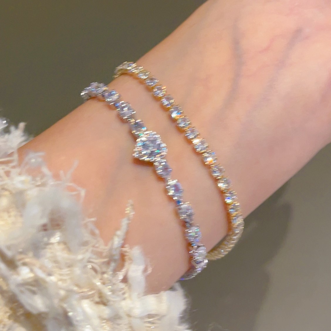 New Jewelry Fashion Large Diamond Bracelet Shiny Zircon Bracelet European and American Style Cross-Border Wholesale Geometric Style