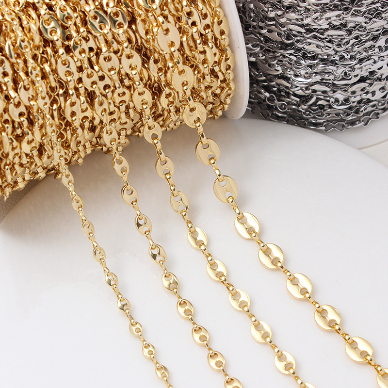 18K color gold plated pig nose chain double hole coffee bean stitching chain copper chain diy loose chain pearl bracelet accessories