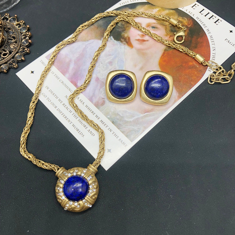 Lapis Lapis Lapis Diamond Wool Chain Versatile Jewelry Western Retro Style Copper Chain Plated with Real Gold Old Effect Necklace
