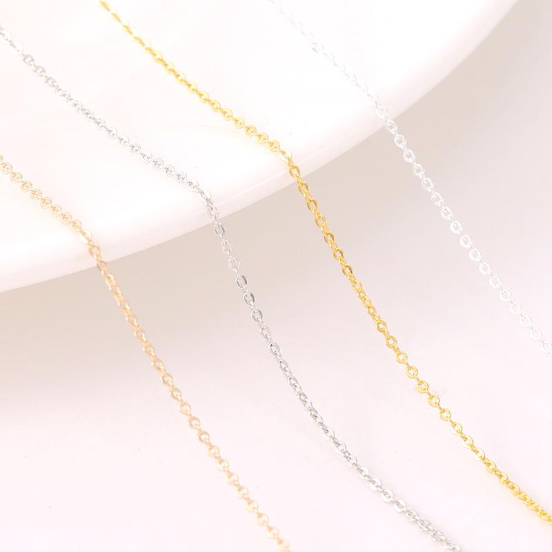 18K Gold-Filled Pure Copper Flattened O Chain Color-Preserving 220as Metal Chain Width about 0.8mm Thin Strip DIY Jewelry Chain