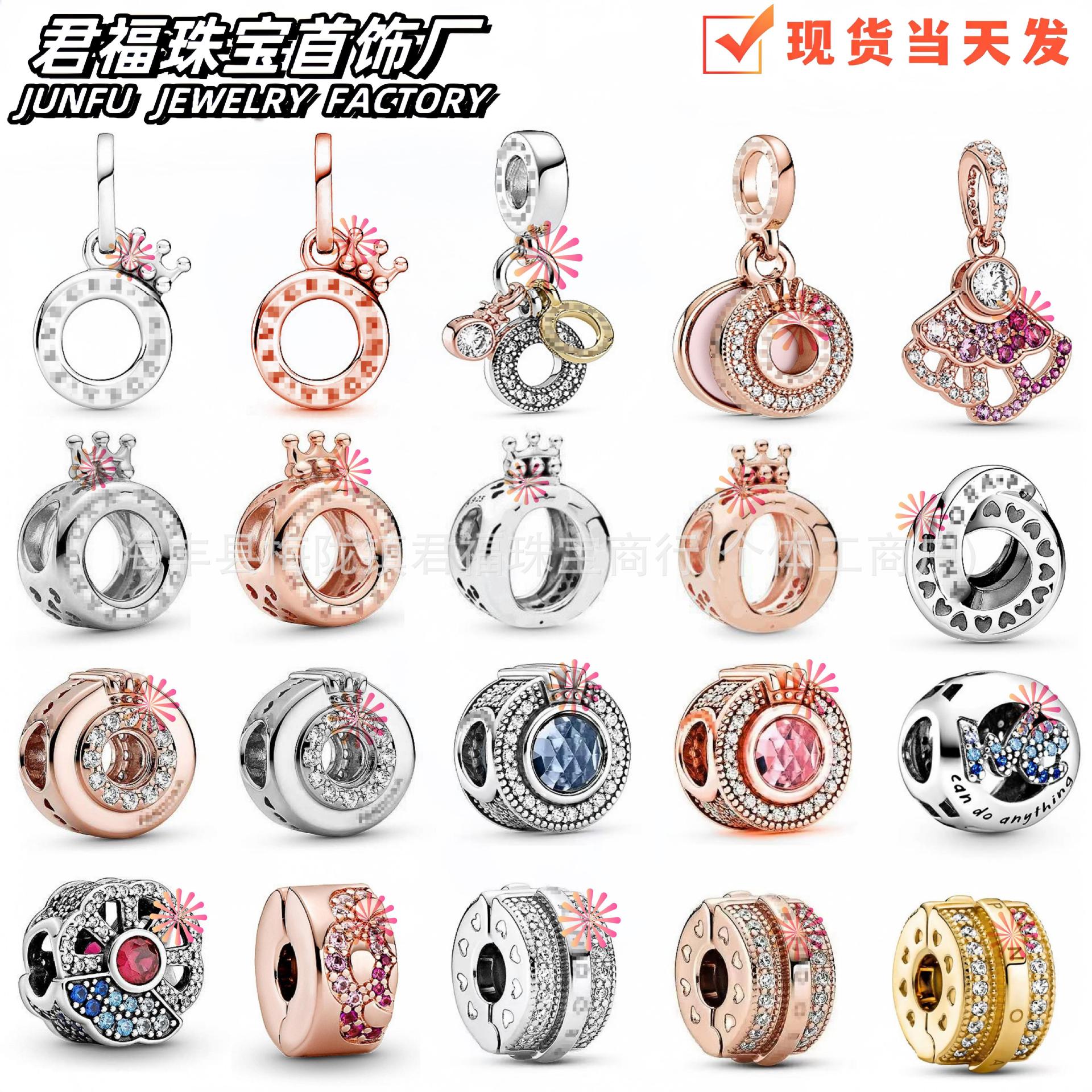 Panjia Beads White Copper Silver Plated Crown Beads Fan Pendant Snake Bone Chain DIY Bead Fixing Clip with Bracelet