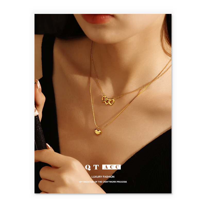 Brass Plated 18K Real Gold European and American ins Niche Minimalist Design Joker Couple Love Pendant Necklace Necklace