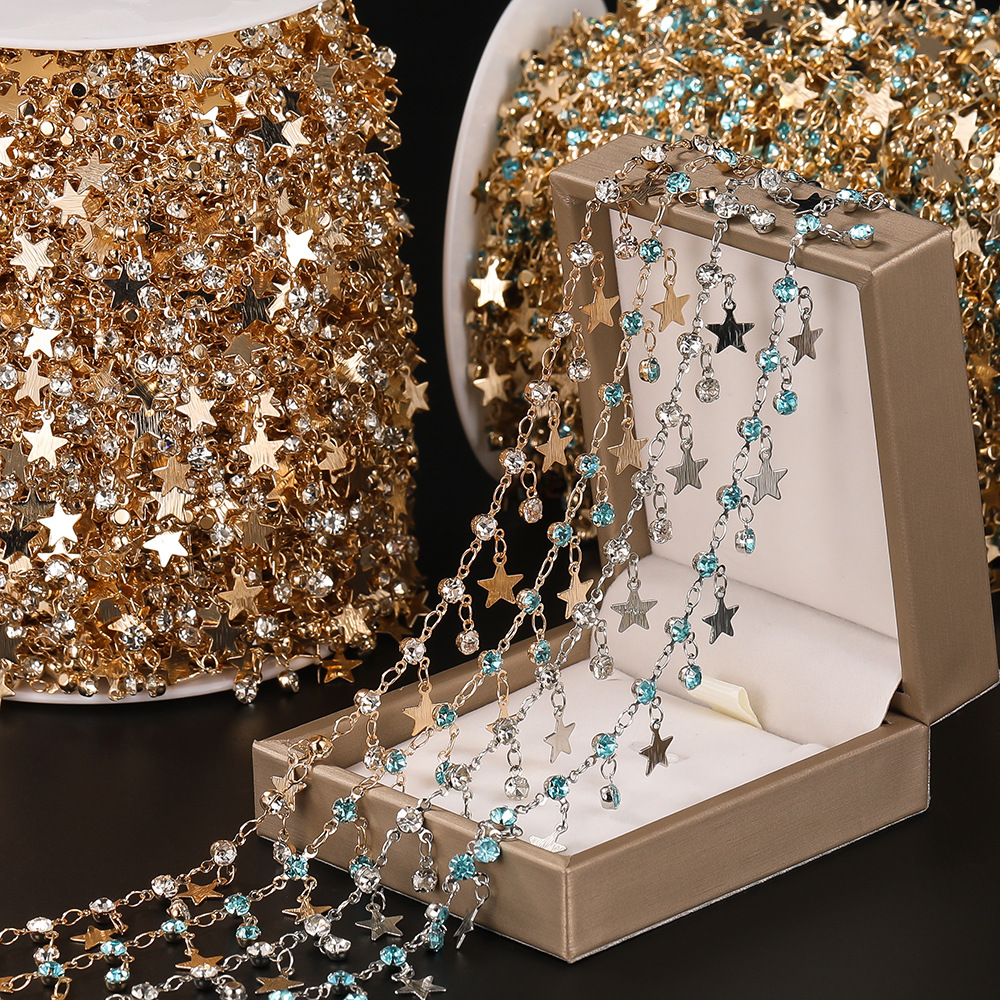 DIY Handmade Chain Accessories Five-Pointed Star Plus Rhinestone Copper Chain Handmade Tassel Chain Color-Preserving Jewelry Chain Wholesale