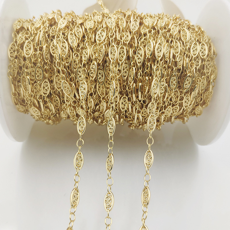 Cross-border clothing diy handmade chain copper gold-plated long piece chain non-fading 14K gold-wrapped oval piece chain