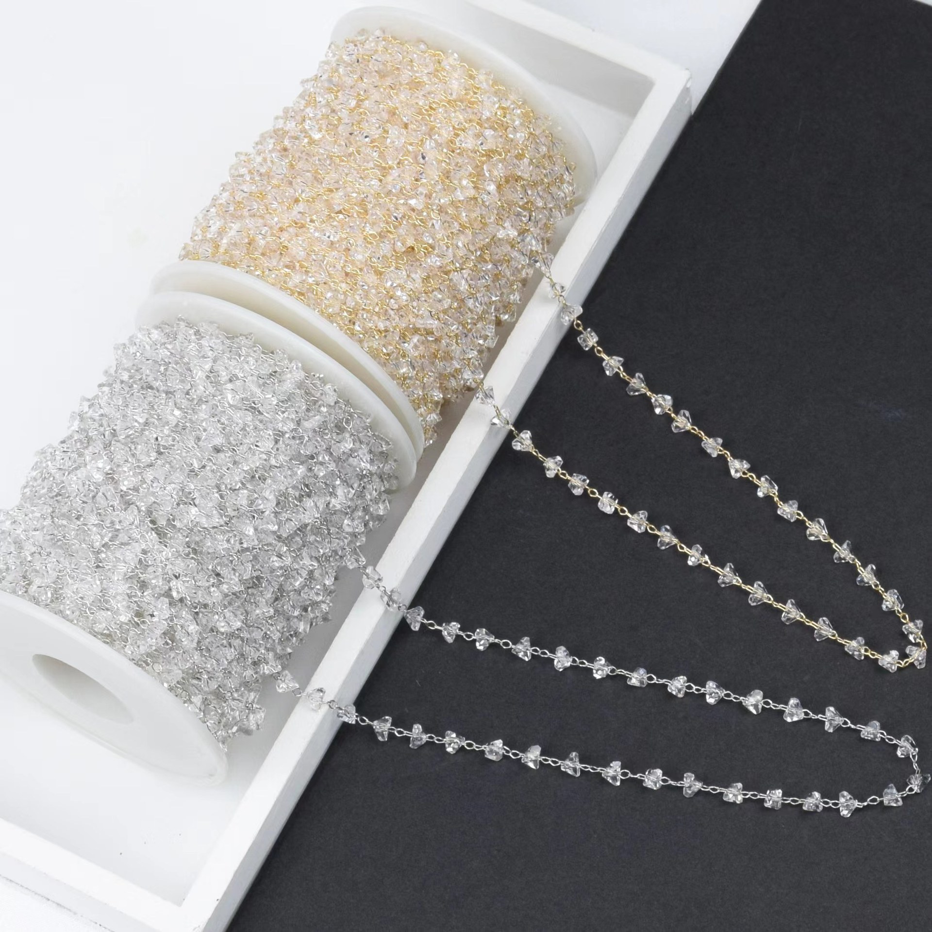 DIY Chain Transparent Triangle Crystal Chain Copper Chain High Color Retention Antique Style Hair Accessories Jewelry Material Sparkling Zircon Chain