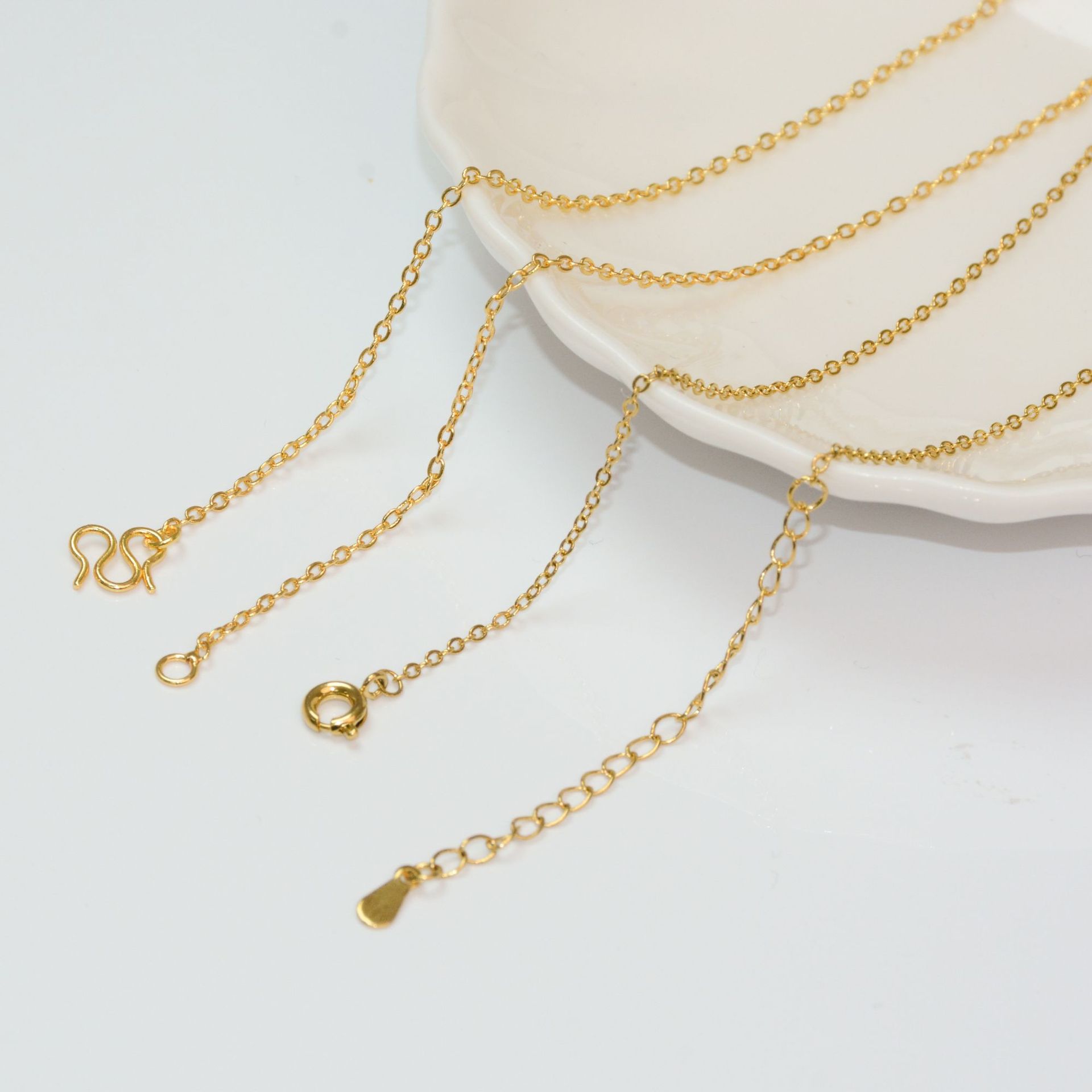 Copper Gold-Plated Jewelry Round Chain 18K Strong Color Retention O-Shaped Chain Box Chain Handmade DIY Necklace Adjustment Extension Chain Women's Accessories