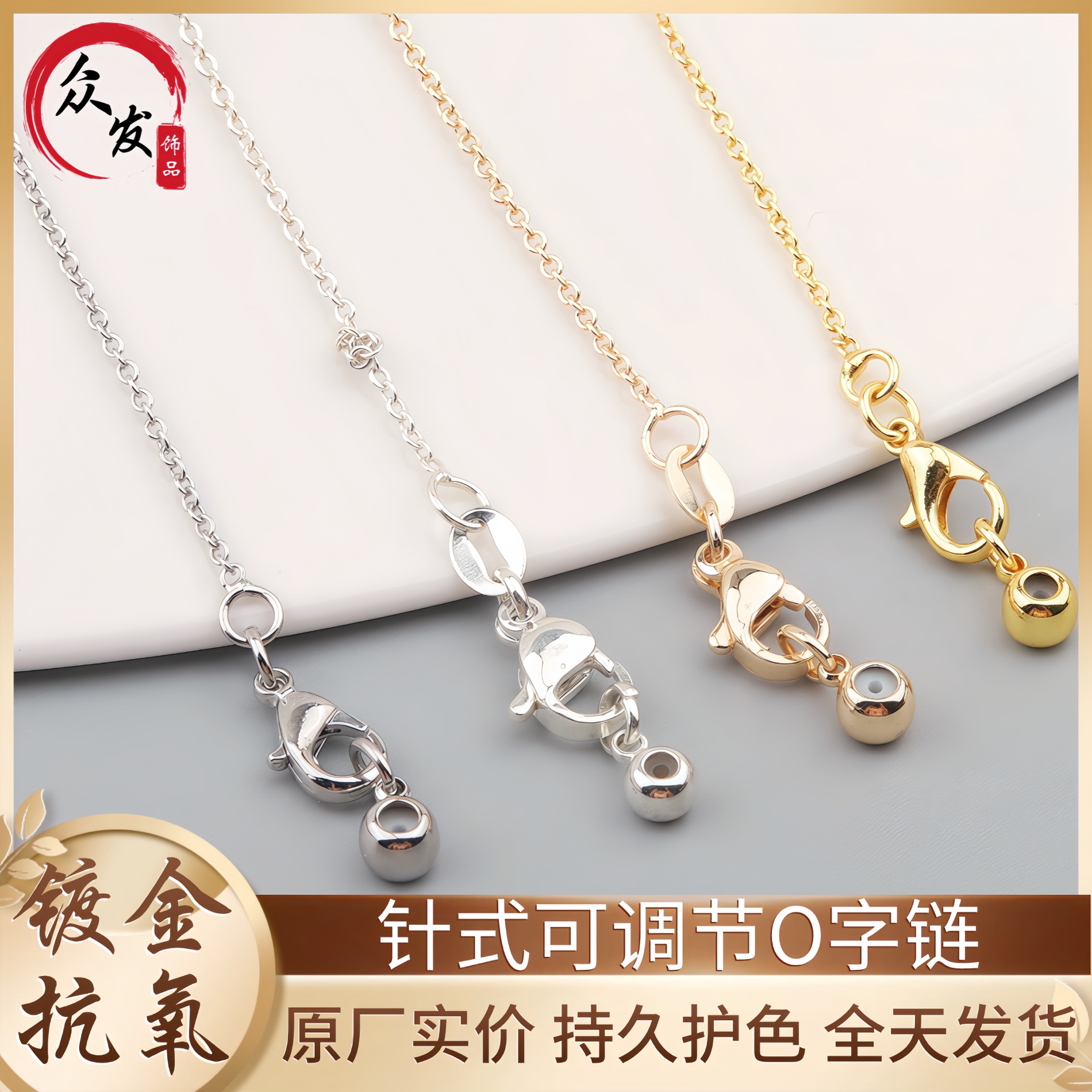 diy jewelry button disc necklace buckle eight-character necklace buckle copper plated real gold pearl chain Buckle