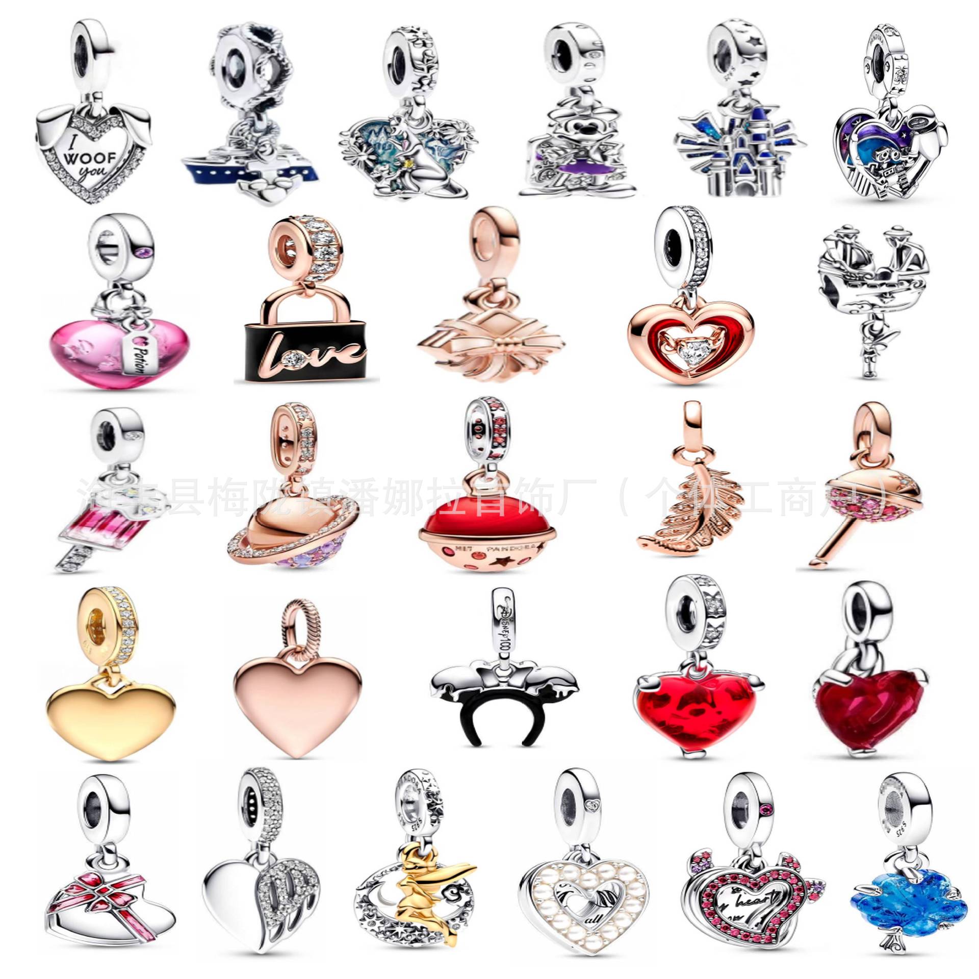 Panjia S925 cupronickel silver plated bracelet silver beads silver beaded diy accessories red love shell key pendant