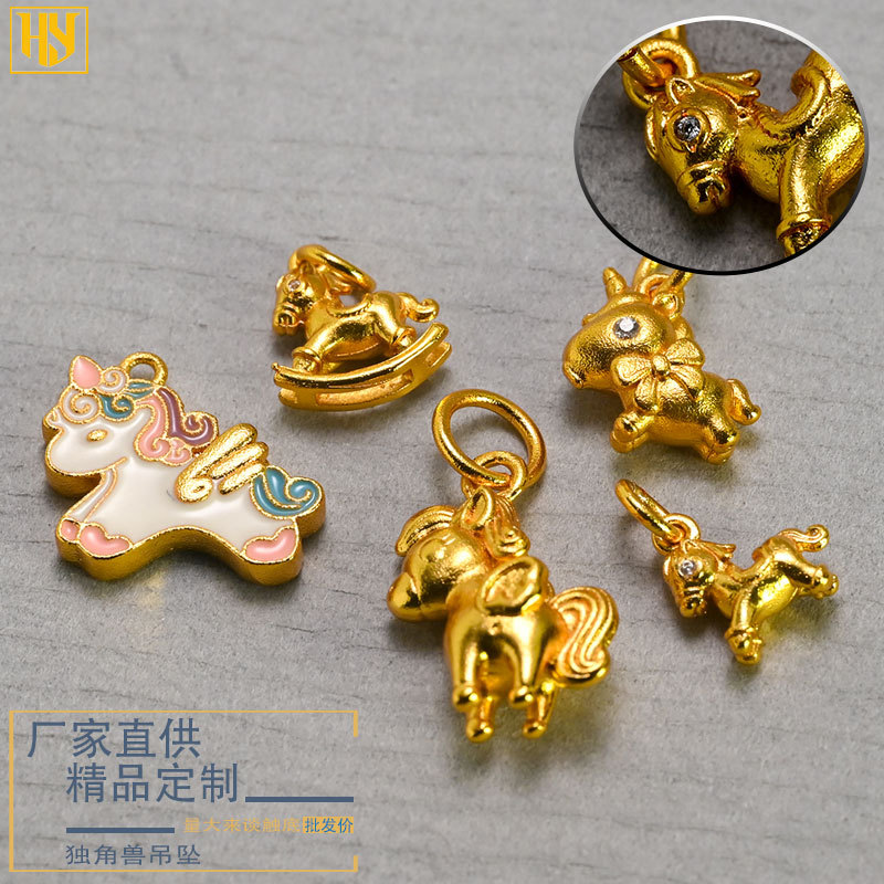 Pure Copper Plated 24K Gold Year of the Horse Unicorn Pony Pendant Jewelry Accessories DIY Pendant Bracelet Decorative Necklace Accessories