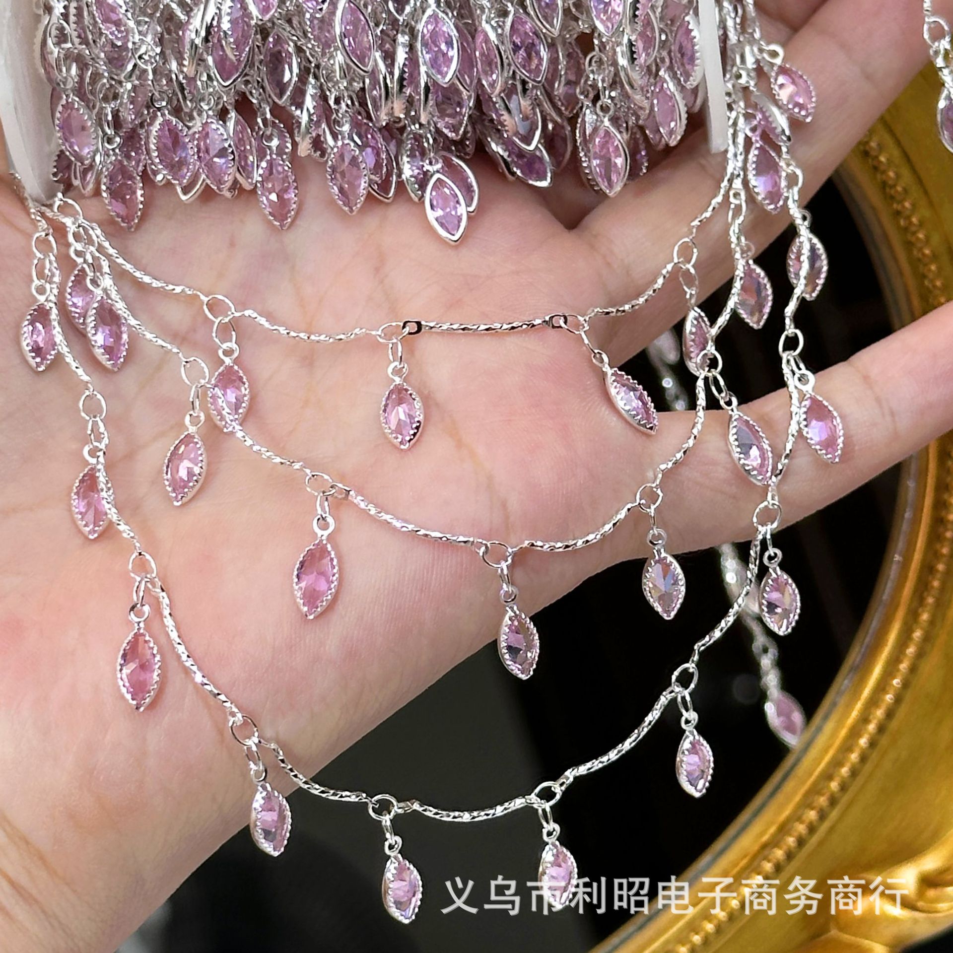 DIY Chain Peach Pink Zircon Chain Curved Rod Hanging Water Drop Zircon Marquise Zircon Handmade Copper Chain Jewelry Accessories