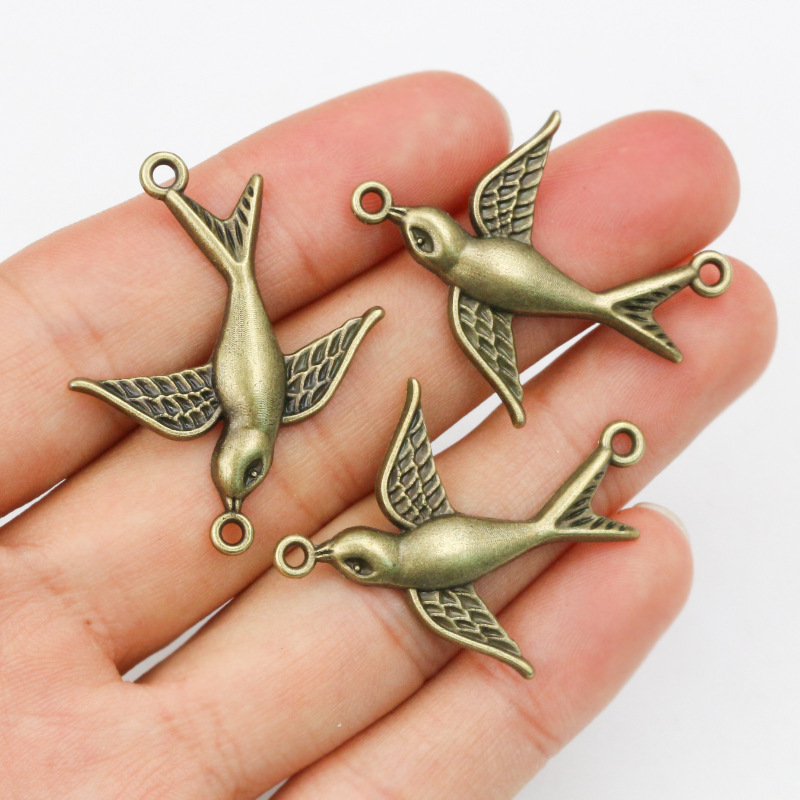 Alloy Bronze Swallow Bird Pendant DIY Jewelry Accessories Necklace Bracelet Pendant 37X30Mm 2g