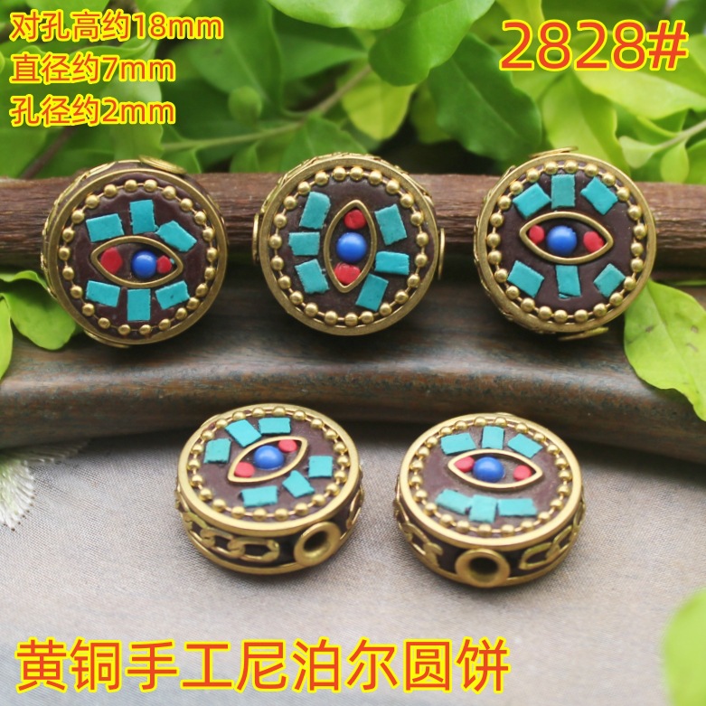 Brass Spacer Beads Handmade Nepalese Round Cake Retro Wholesale Pendant Bracelet Necklace Clothing DIY Jewelry Accessories