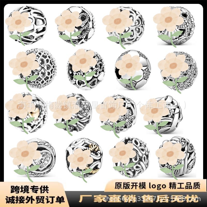 Cross-Border E-Commerce Export Supply White Copper Silver-Plated Beads Flower Beads DIY Jewelry Accessories Bracelet Necklace Pendant