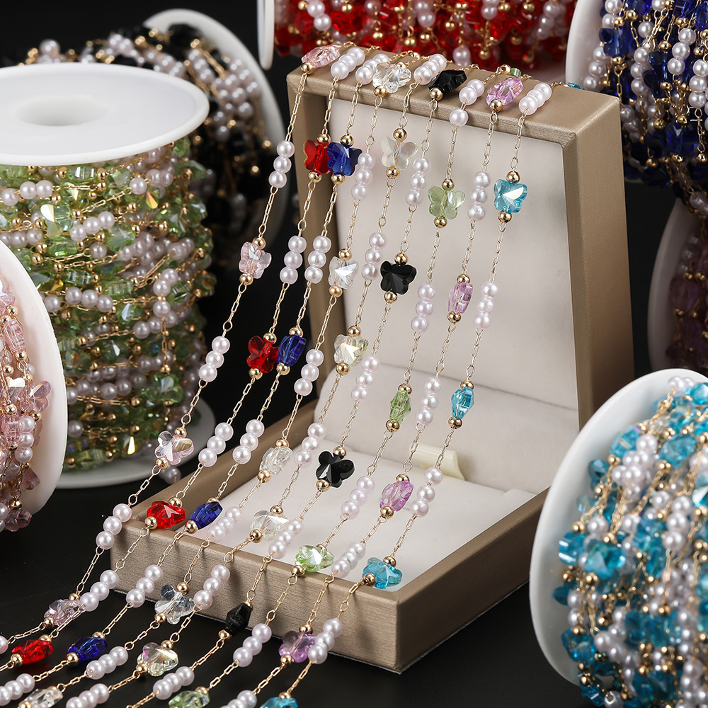 Butterfly Spacer Pearl Copper Chain DIY Handmade Jewelry Chain Accessories Hairpin Earrings Clothing Tassel Handmade Material Batch