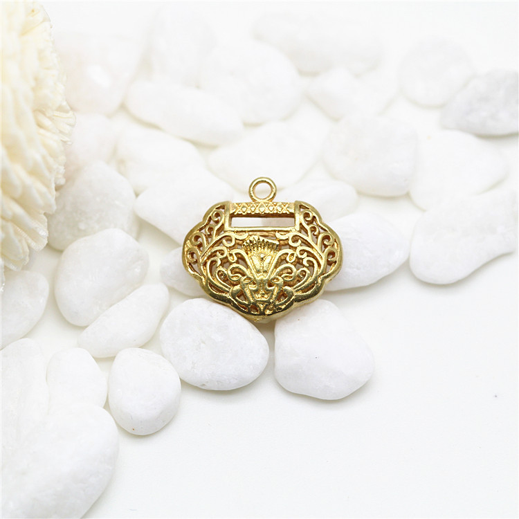 diy jewelry accessories pure copper ethnic style retro hollow long life lock accessories handmade necklace pendant material wholesale