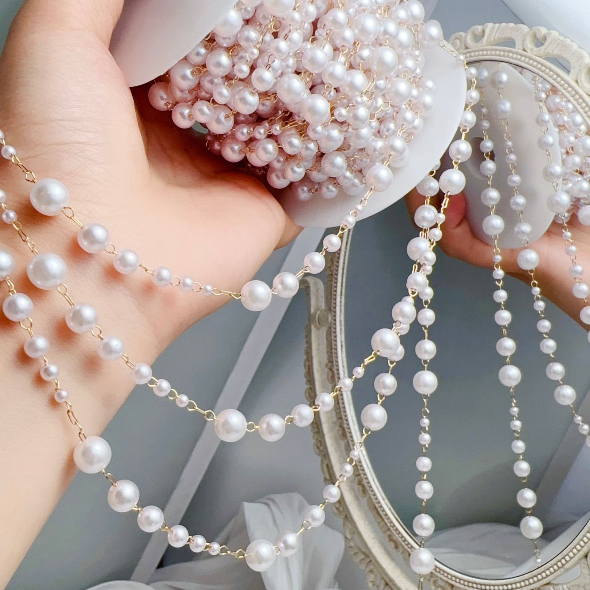 Diy pearl chain 3-8mm in turn size pearl chain high color copper chain antique jewelry exotic clothing accessories