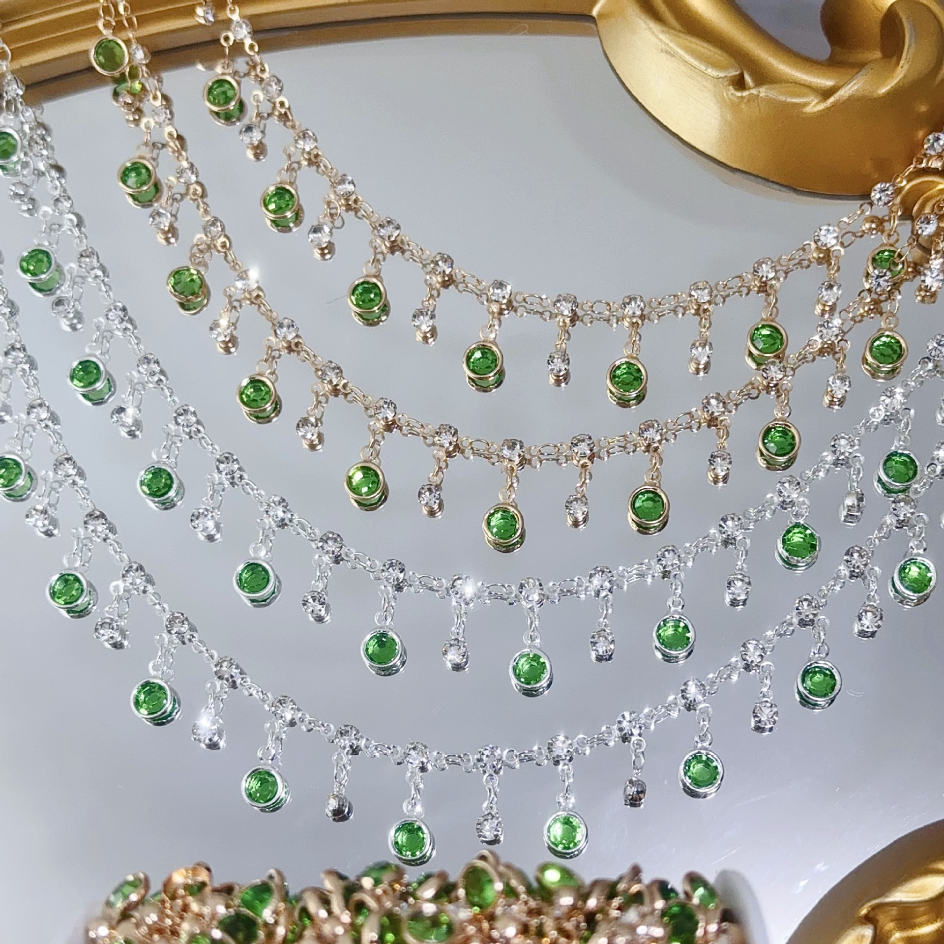 Biliu~Diy Chain High Color Retention Three-Claw Light Green Glass Chain Lolita Clothing Tassel Copper Chain Jewelry Material