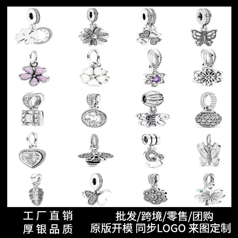 Panjia Beads White Copper Silver-Plated Bracelet Orchid Series Pendant Four-Leaf Clover Hanging Beads Flower Butterfly Pendant Beaded Accessories