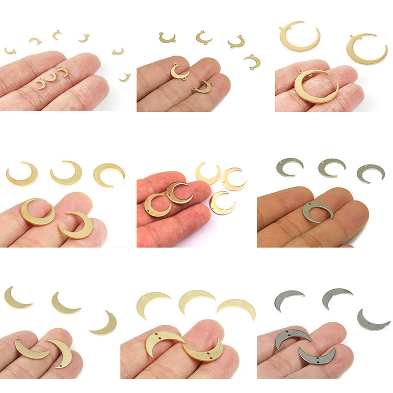 Ins Wind Bell Brass Cutting Jewelry Accessories Single Hole Double Hole Crescent Diy Bracelet Necklace Moon Series Pendant