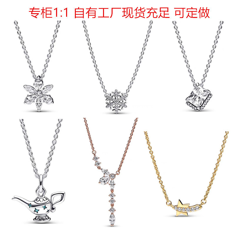 Pandora White Copper Silver Plated Necklace Aladdin Divine Lamp Snowflake Necklace Female