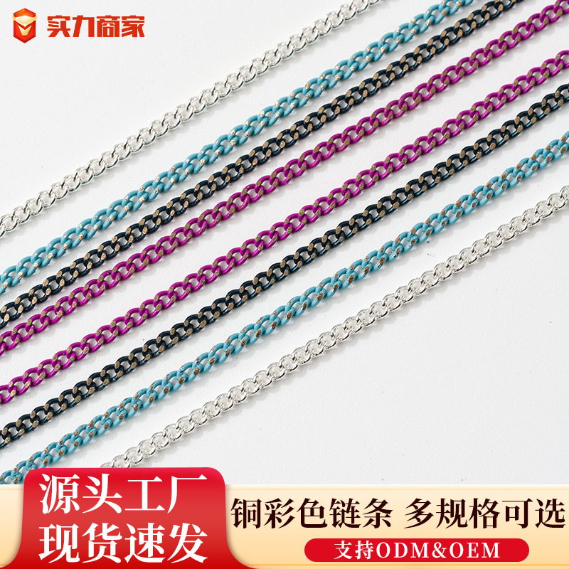 Copper Colorful Side Chain Handmade DIY Jewelry Accessories Headwear Necklace Material Crafts Tassel Decorative Chain