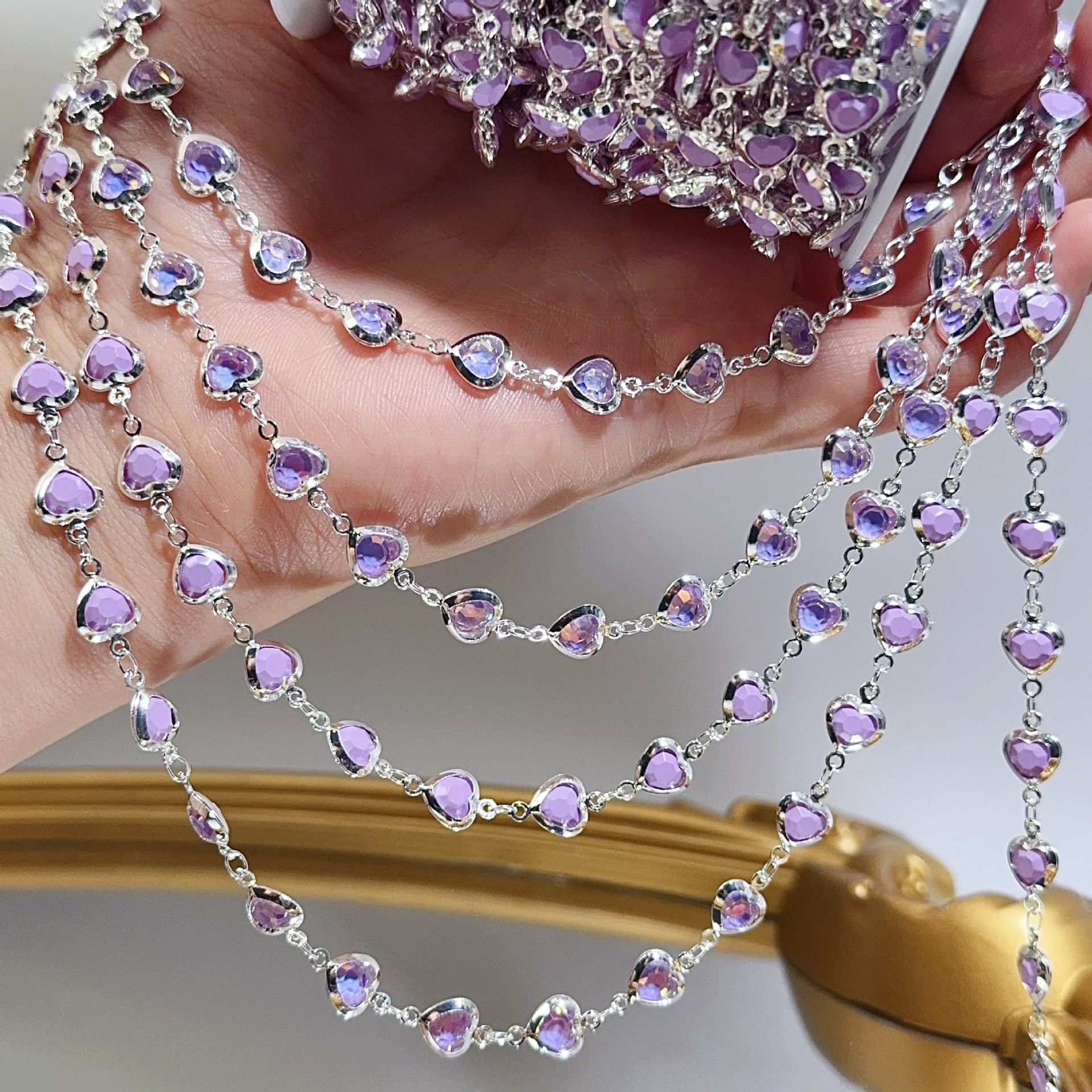 DIY Chain Mocha Purple Peach Heart Chain Dreamy Purple Jelly Color Heart Copper Chain Color-Preserving Lolita Jewelry Material